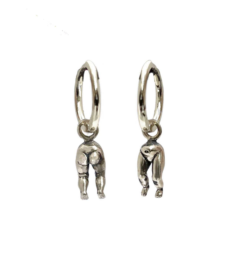 Gold: 14K gold plated sterling silver hoops with brass baby head charms