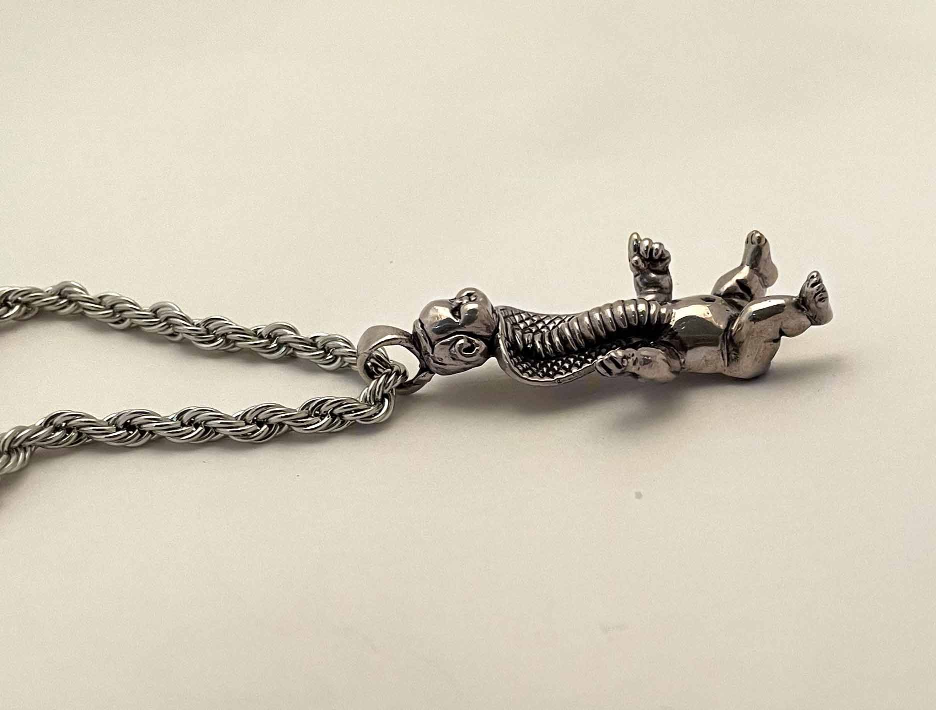 The one and only Cobra Baby Doll Necklace is complete! These necklaces are so fabulous that I can't even be modest about them. I hand carved each dimple on this baby's body with care and made sure they had just the right grin/beginning of a frown.