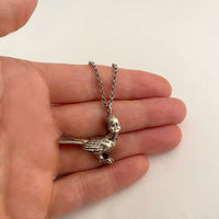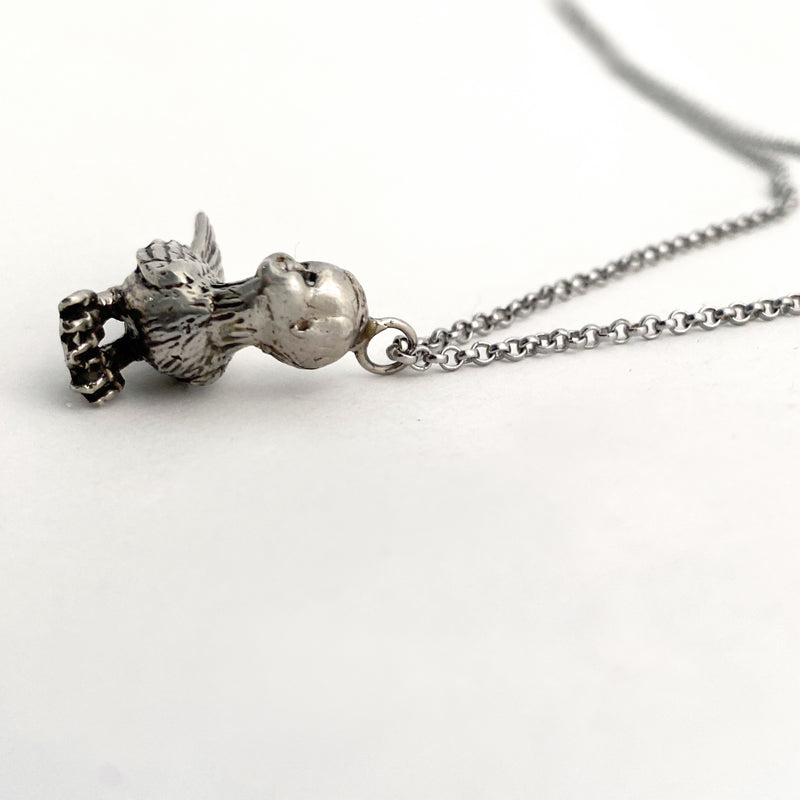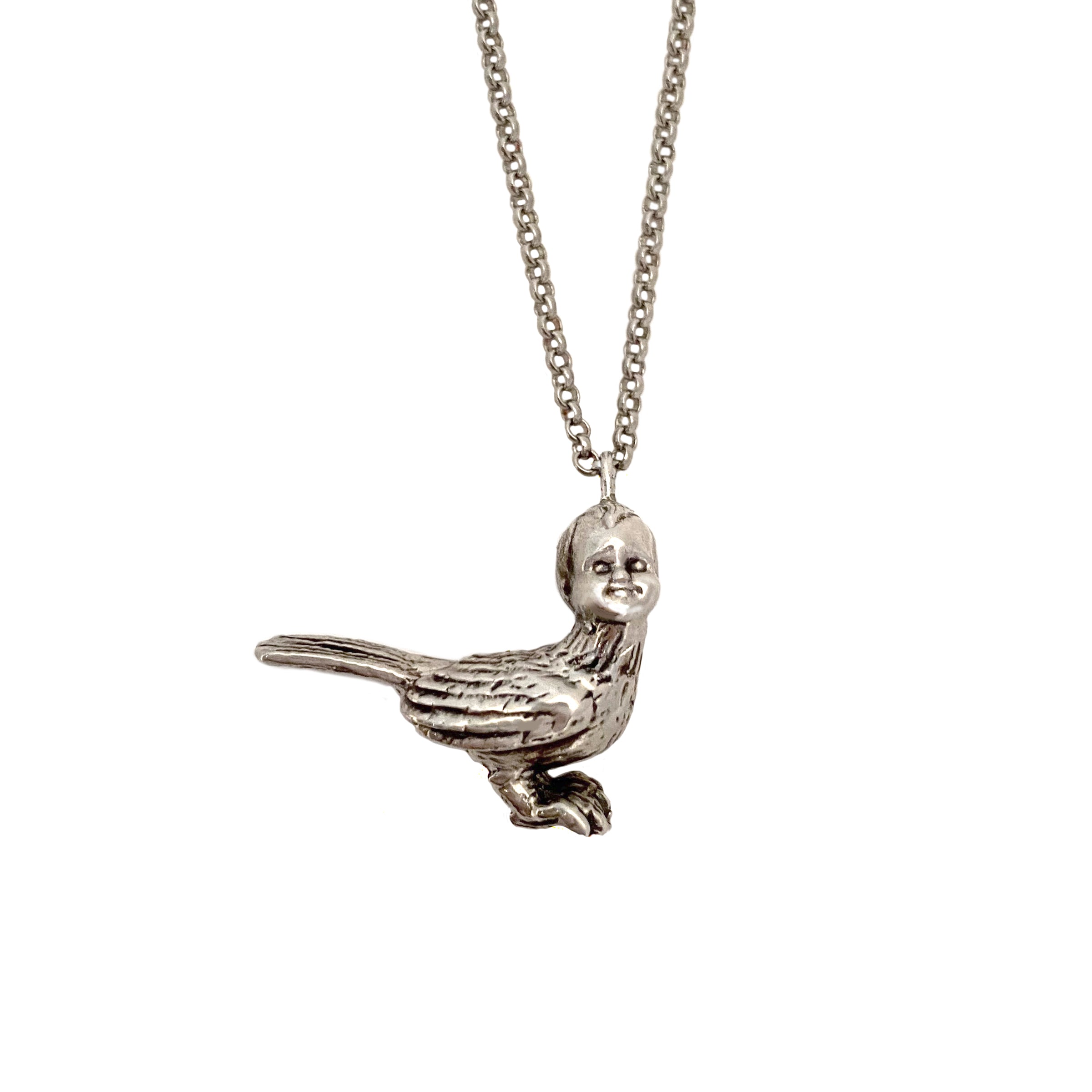 This hybrid baby and bird charm necklace is the newest in a group of strange and unusual charms I made during the beginning of quarantine during the worldwide pandemic this year. Strange times call for strange creations.
