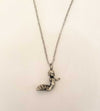 Silver Tone: White brass charm on a silver tone chain.