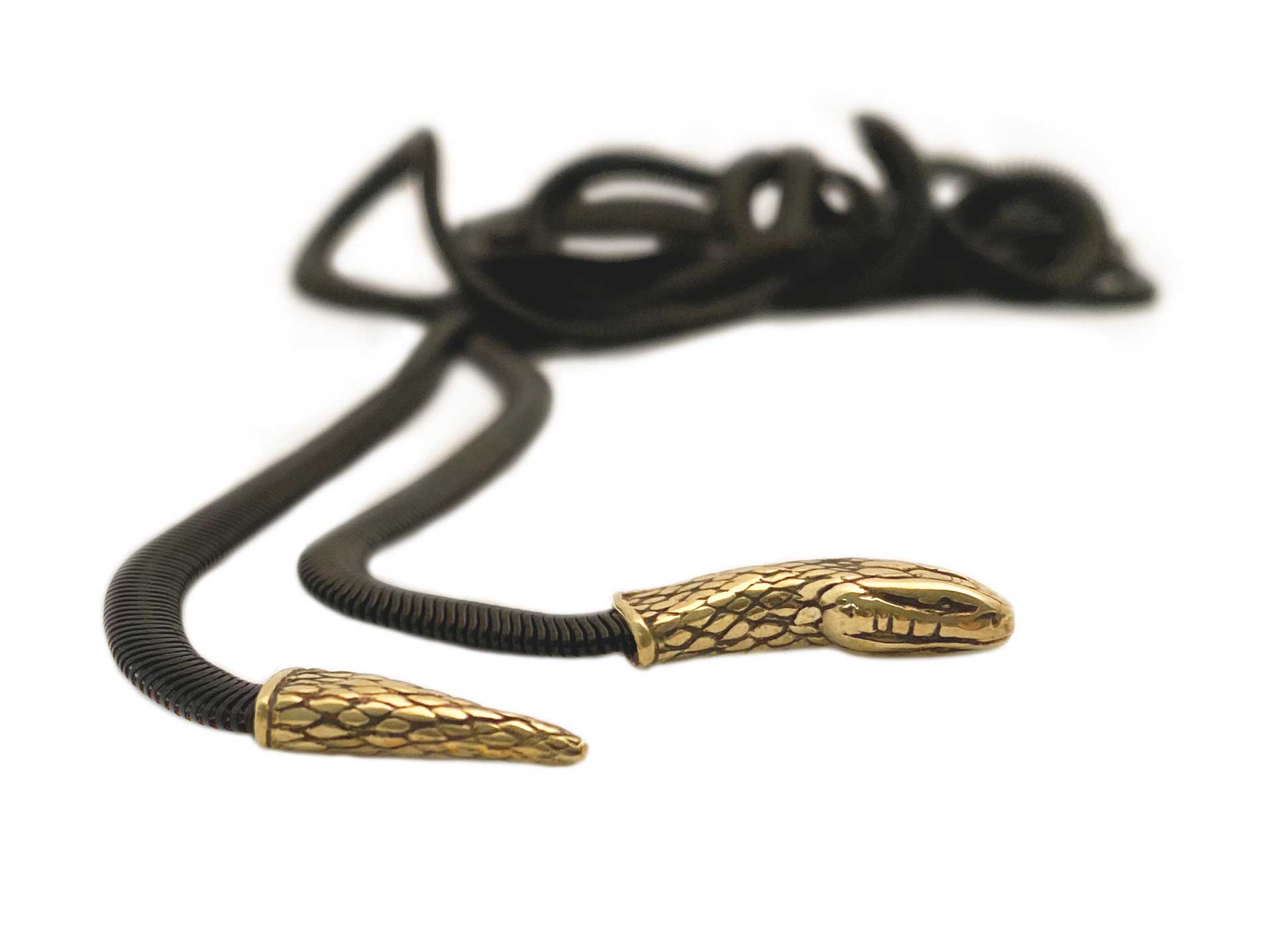 The Snake Lariat Necklace is so versatile. You can wrap, twist and tie this chain into a number of variations. one day you can wear it like a choker, and the next like along chain. Looks great on its own or layered with other necklaces.