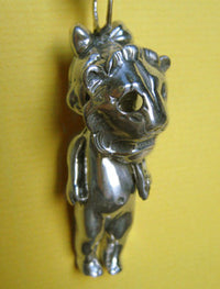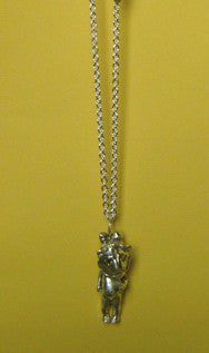 Dimensions: Figure stands 2 inches tall and 3/4 of an inch at its widest. The necklace is adjustable hanging 18 inches at its shortest and 22 inches at its longest.