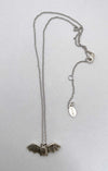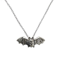 Bat measures 3/4's of an inch long. The necklace is adjustable and measures 17 inches at its shortest and 21 inches at its longest.