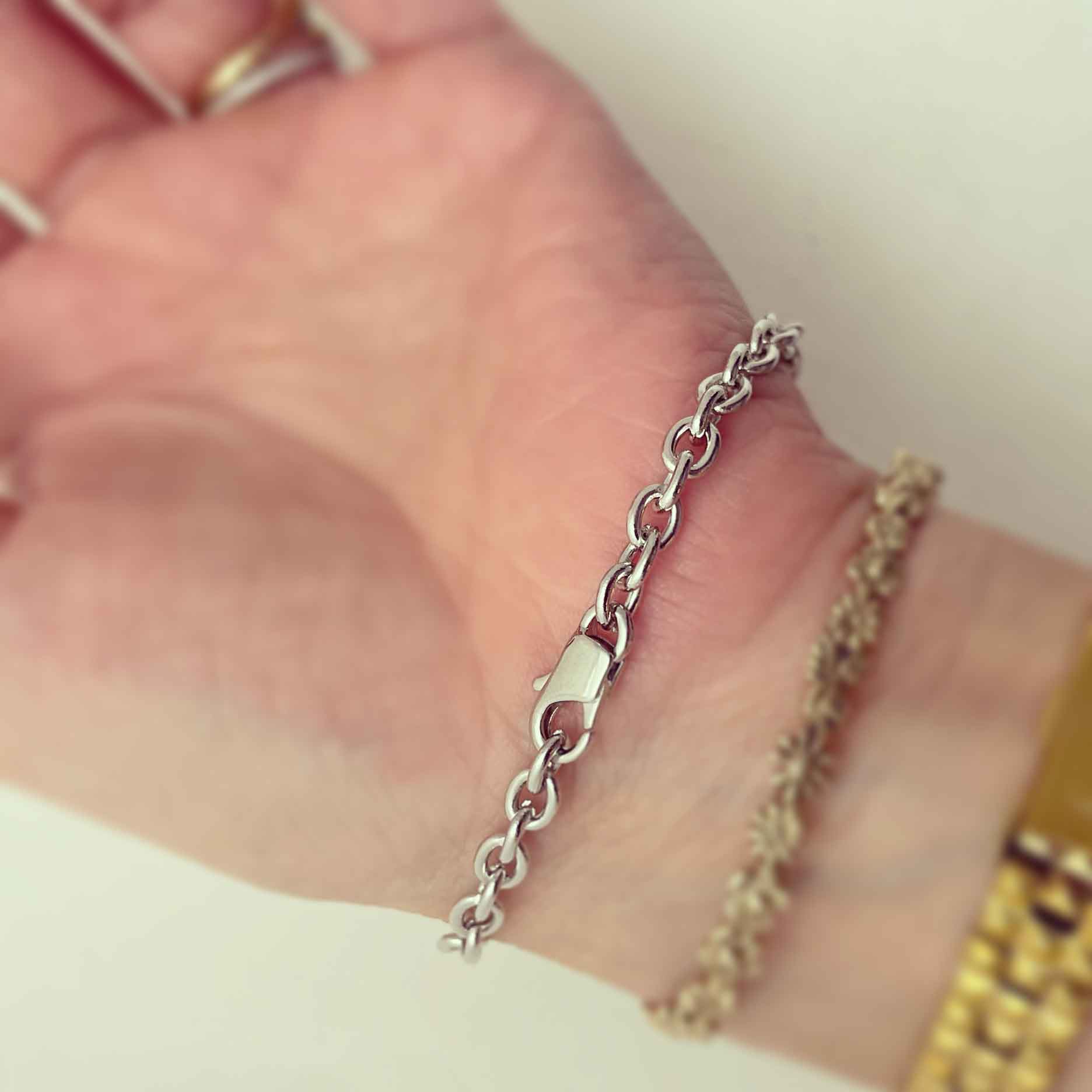 The length of the bracelet from end to end is adjustable and measures from 5.5 - 7.5 inches depending on the link you choose to close it on.