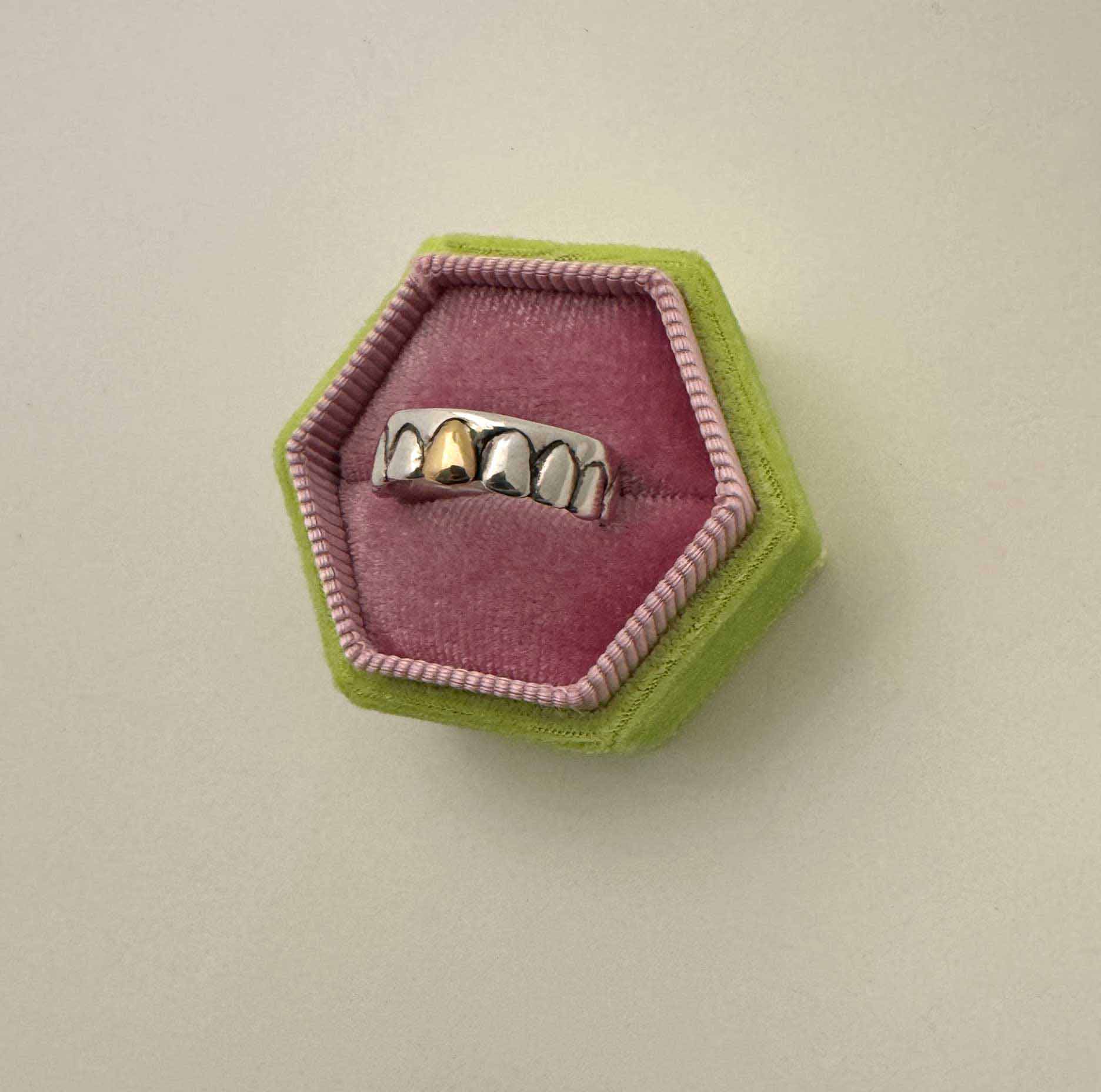 The Gold Tooth Ring is for anyone who’s ever saved something strange for sentimental reasons. The private and perverse things we’ve pocketed and never trashed. It’s about the creepy little relics we hang on to literally turned into gold.