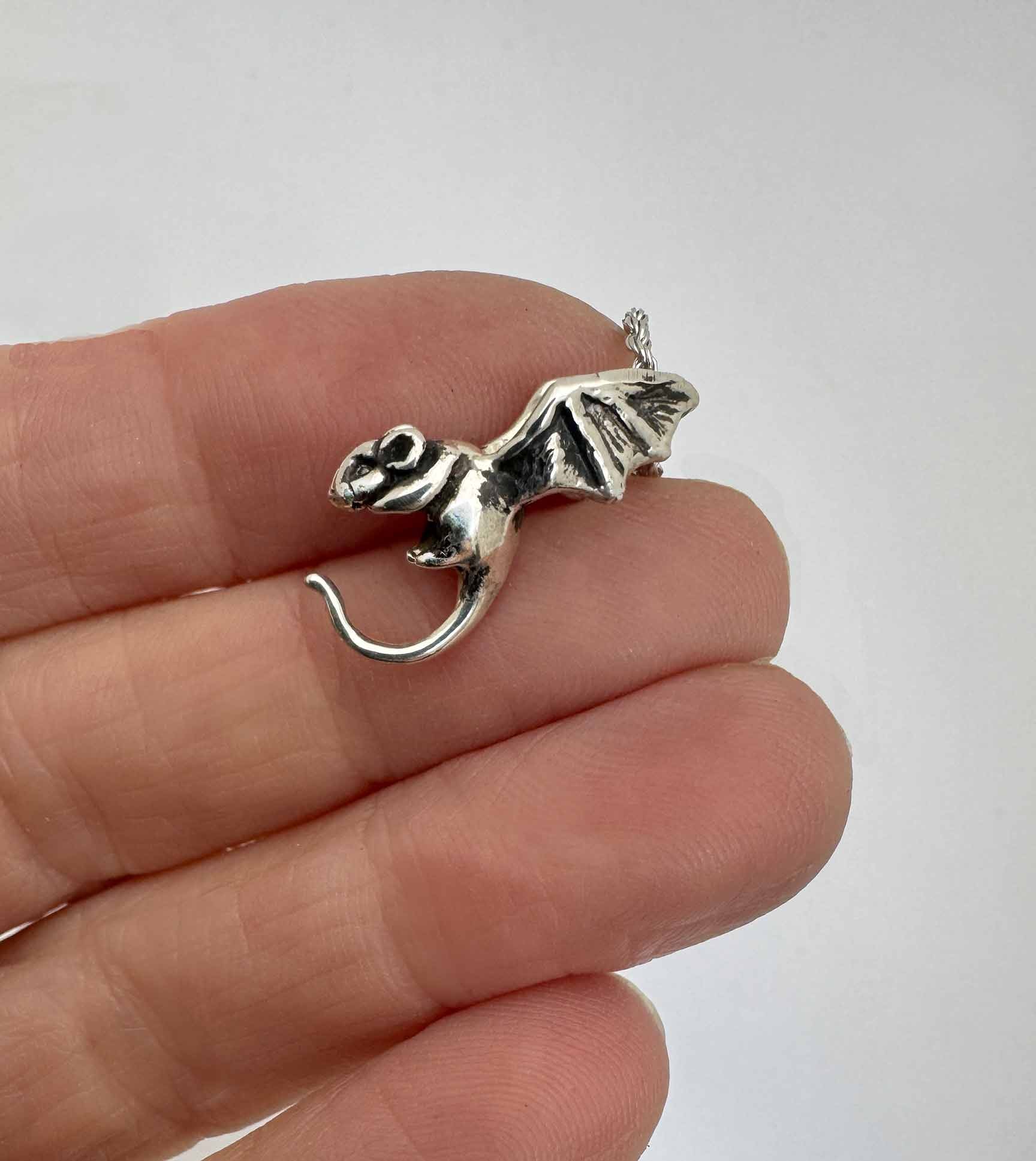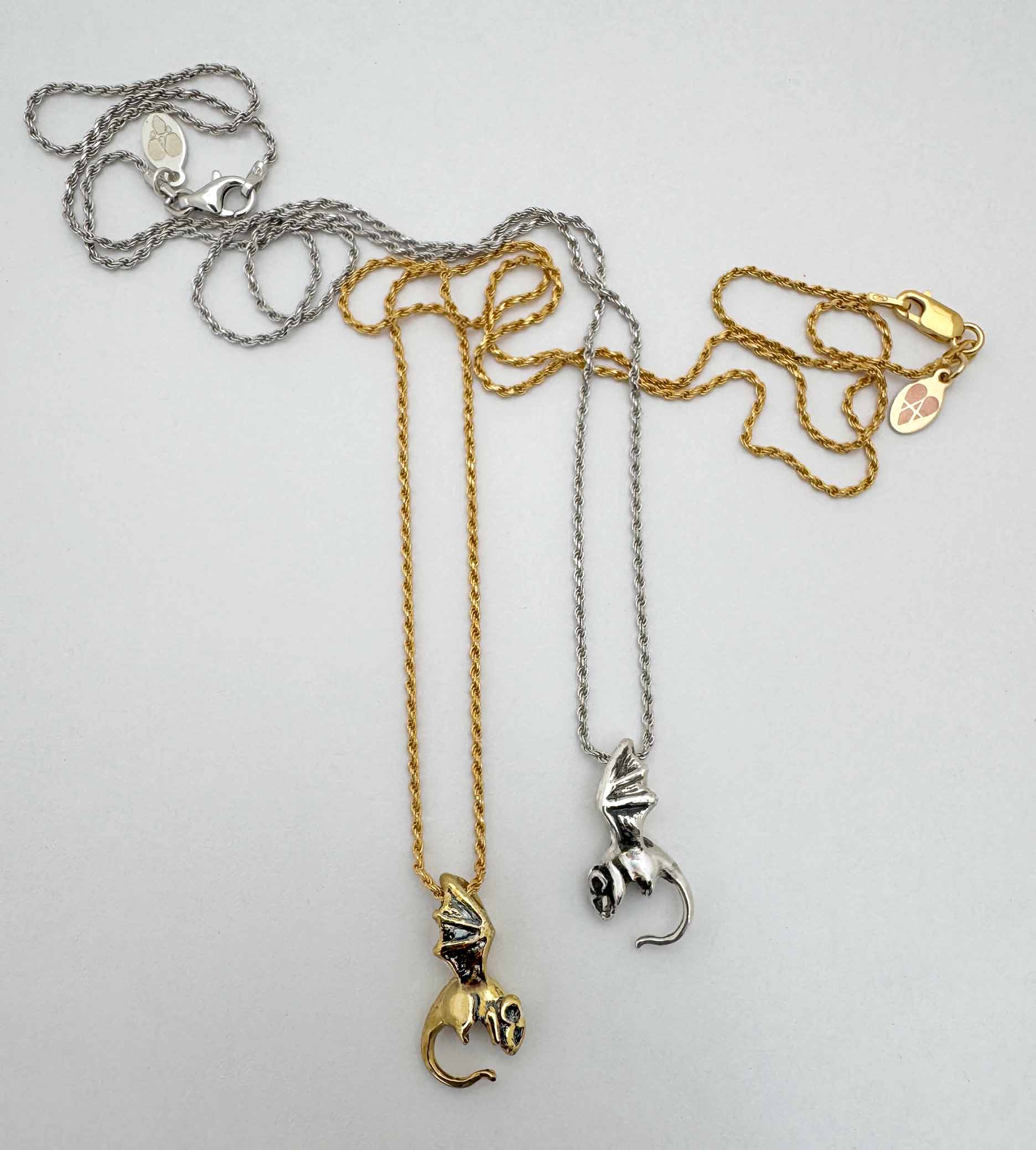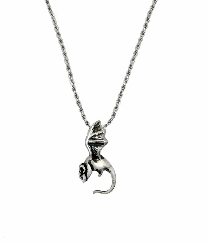 What happens when you blend the misfit of the streets with the creature of the night? Meet the Rat Bat Necklace, where two of nature’s most misunderstood beings unite in perfect rebellion.