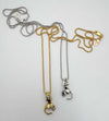 The charm measures 20mm long (3/4's of an inch) and 10mm at its widest. The chain is 1mm wide and measures 18 inches long.