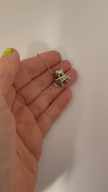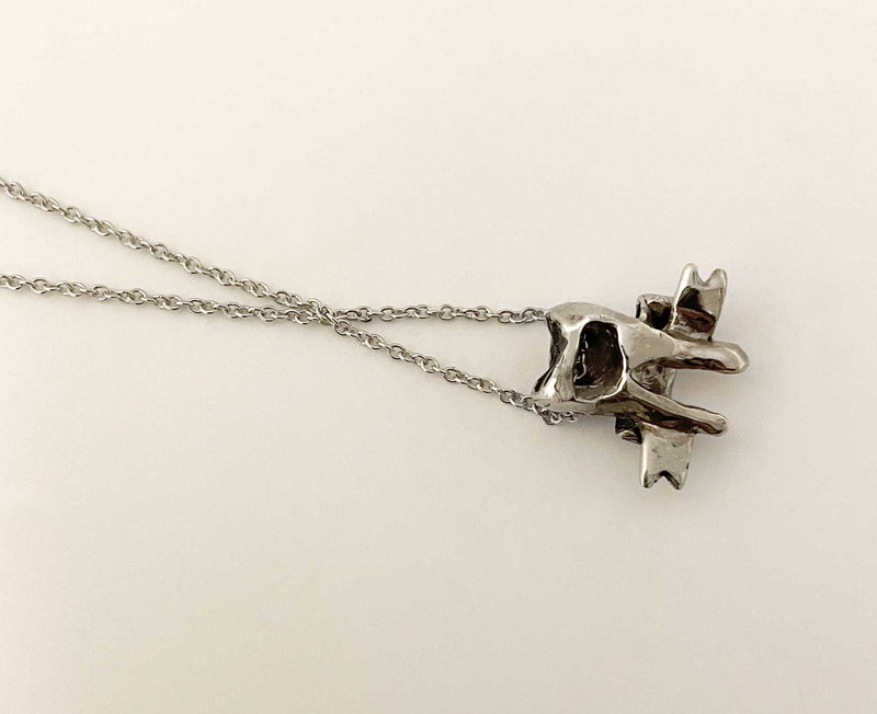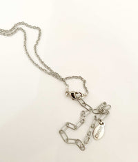 Silver Tone: Solid white brass charm on a silver tone chain