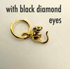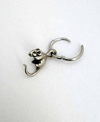 These hoop earrings feature tiny, listless rat bodies dangling from each one, adding a touch of the macabre to your day-to-day look. The rats hang with a kind of effortless surrender. Subtle but significant, these rats have seen things. Perfect for those days when you feel like dragging through life but still want to look damn good doing it.