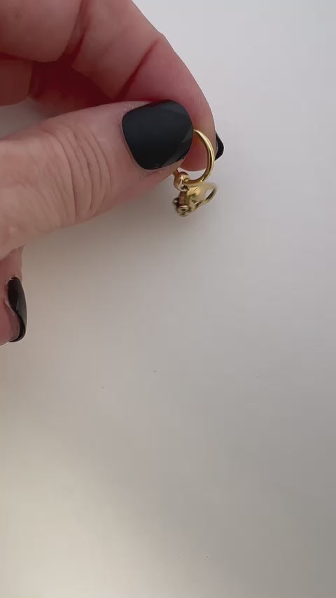 Gold: brass charms on 14K gold plated (over sterling silver) hoops