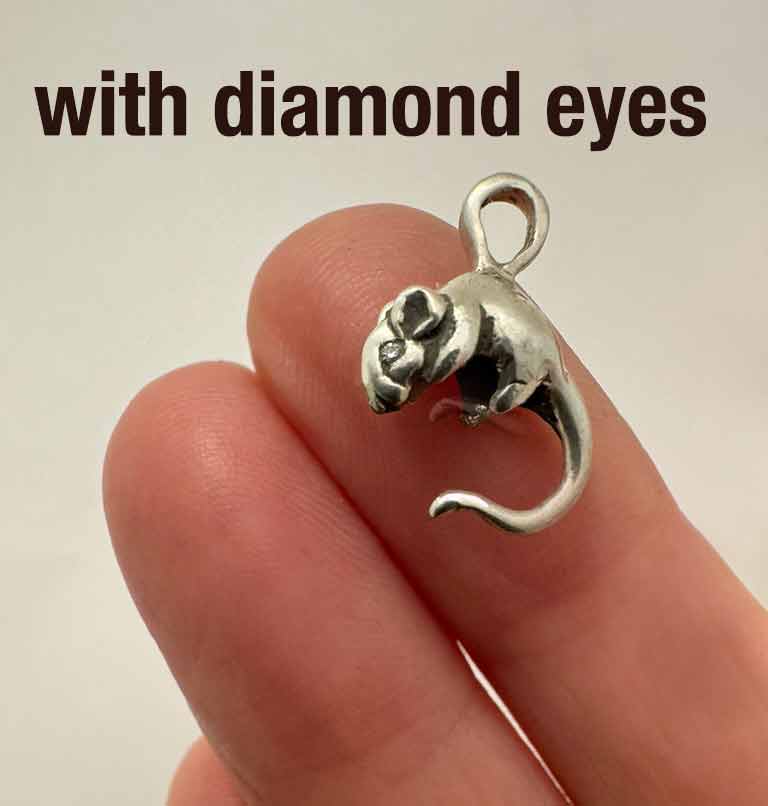 The rat charms measure 10mm tall and 13mm at its widest. The hoops are 15mm. The hoops click closed and open and are hinged.
