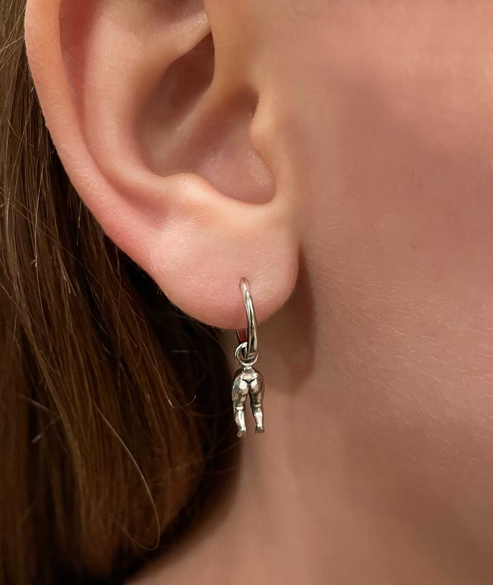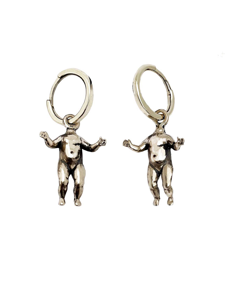 Silver: solid sterling silver hoops with white brass baby head charms