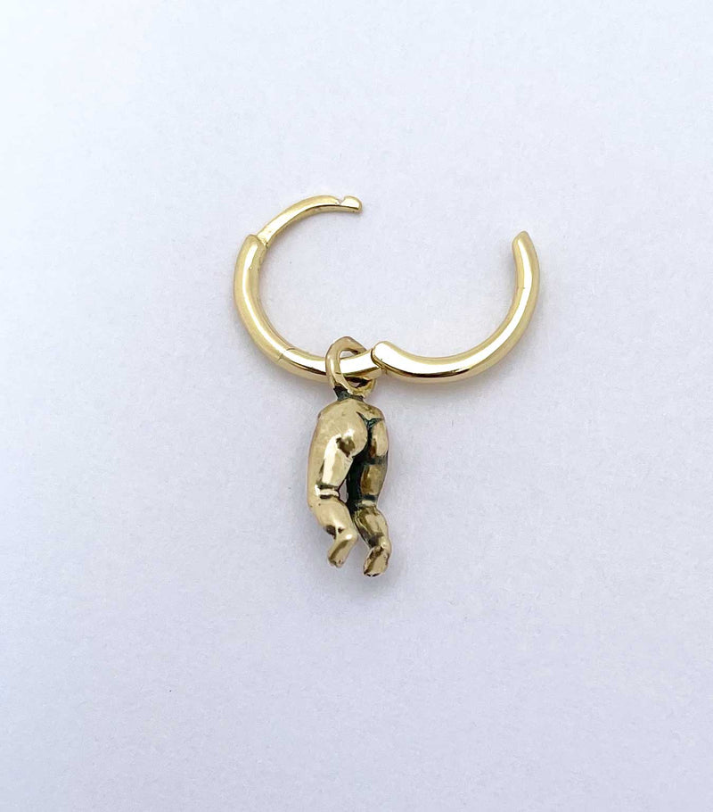 Gold: 14K gold plated sterling silver hoops with brass baby head charms