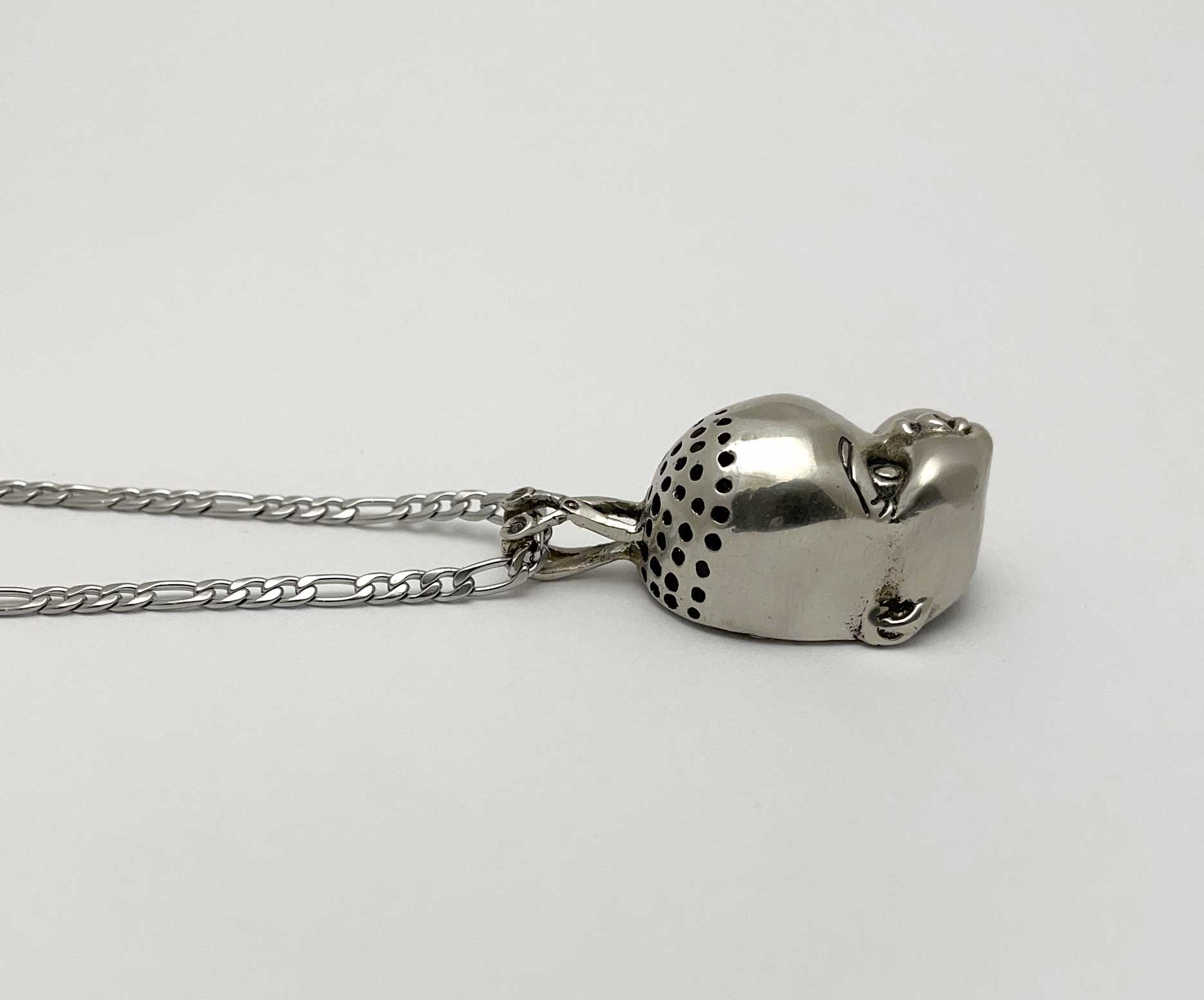 The sterling silver chain is 18 inches long and can be hooked on a shorter link if you want to make it shorter.